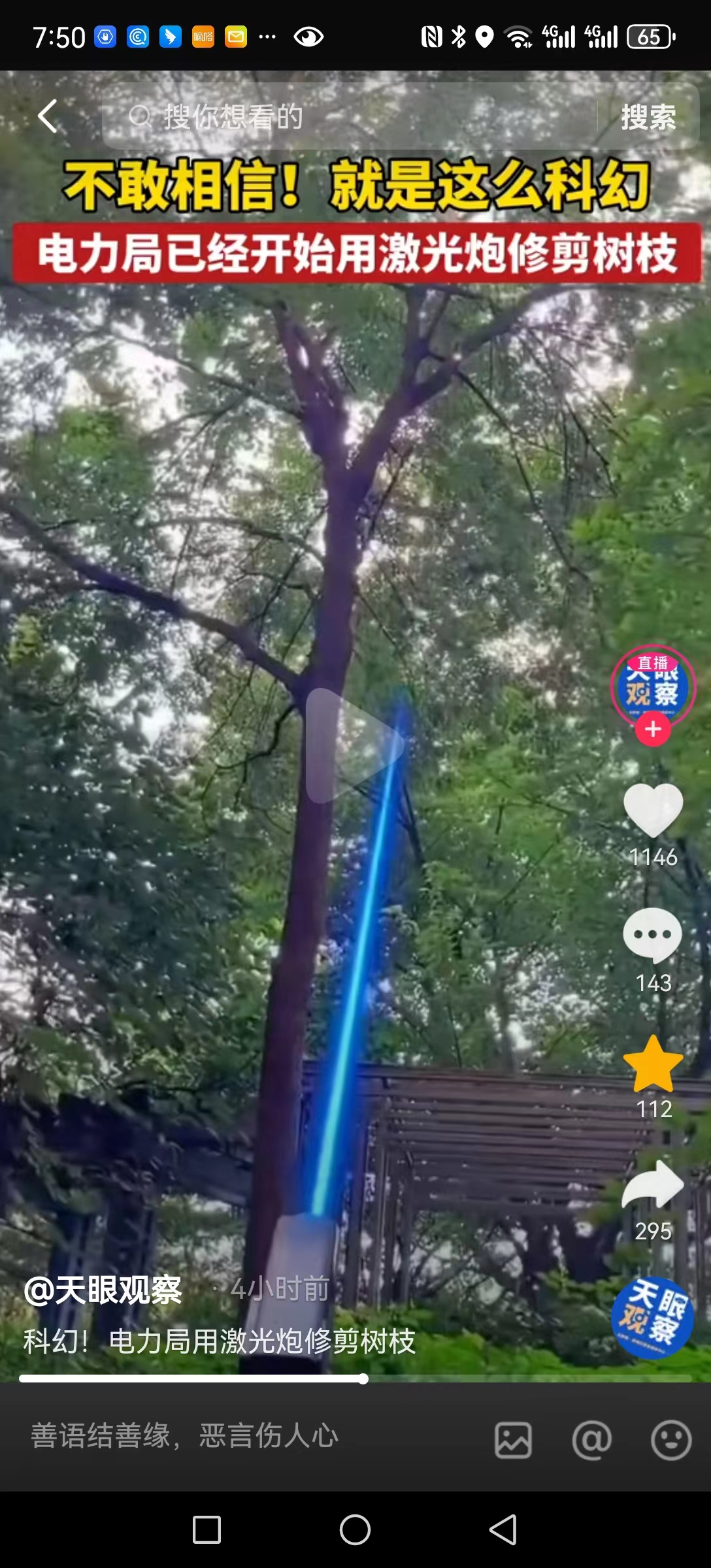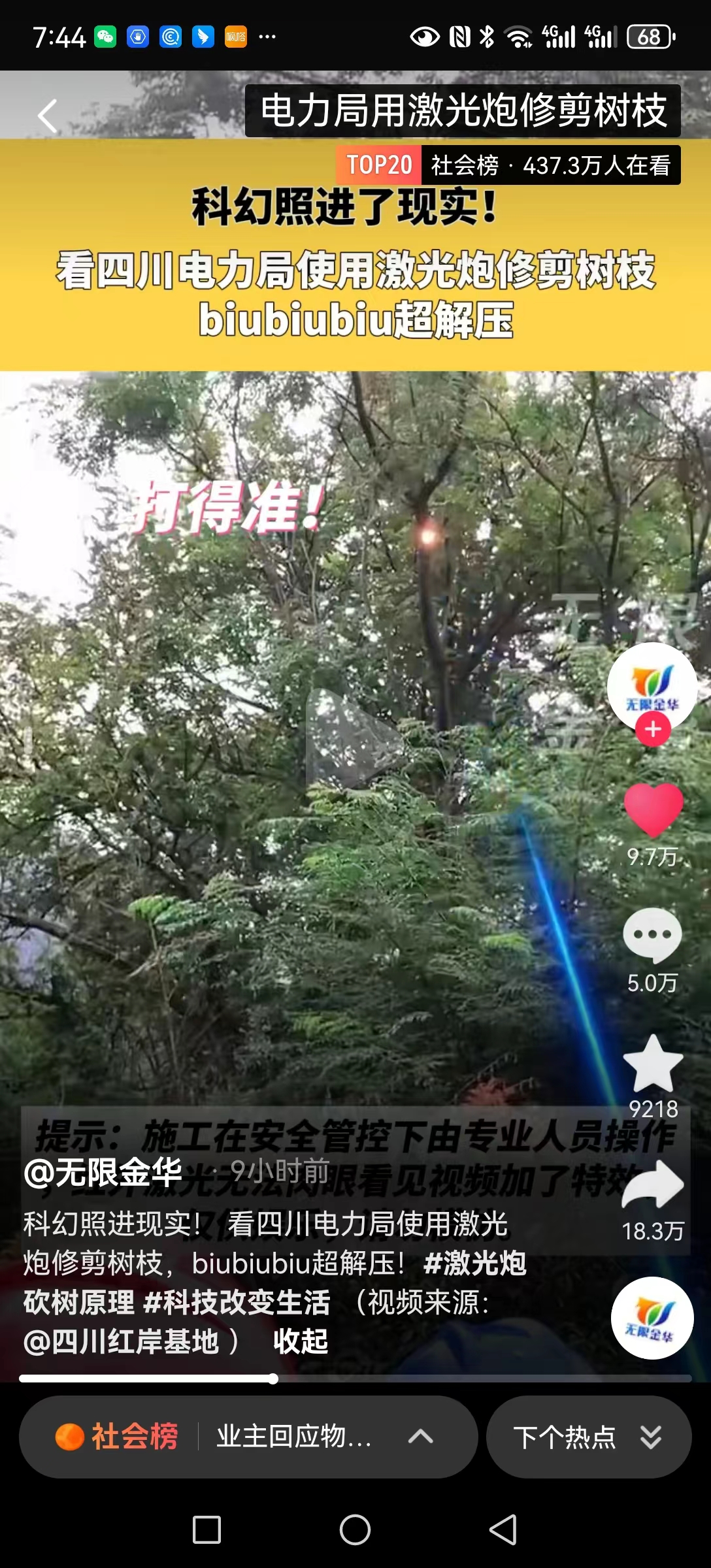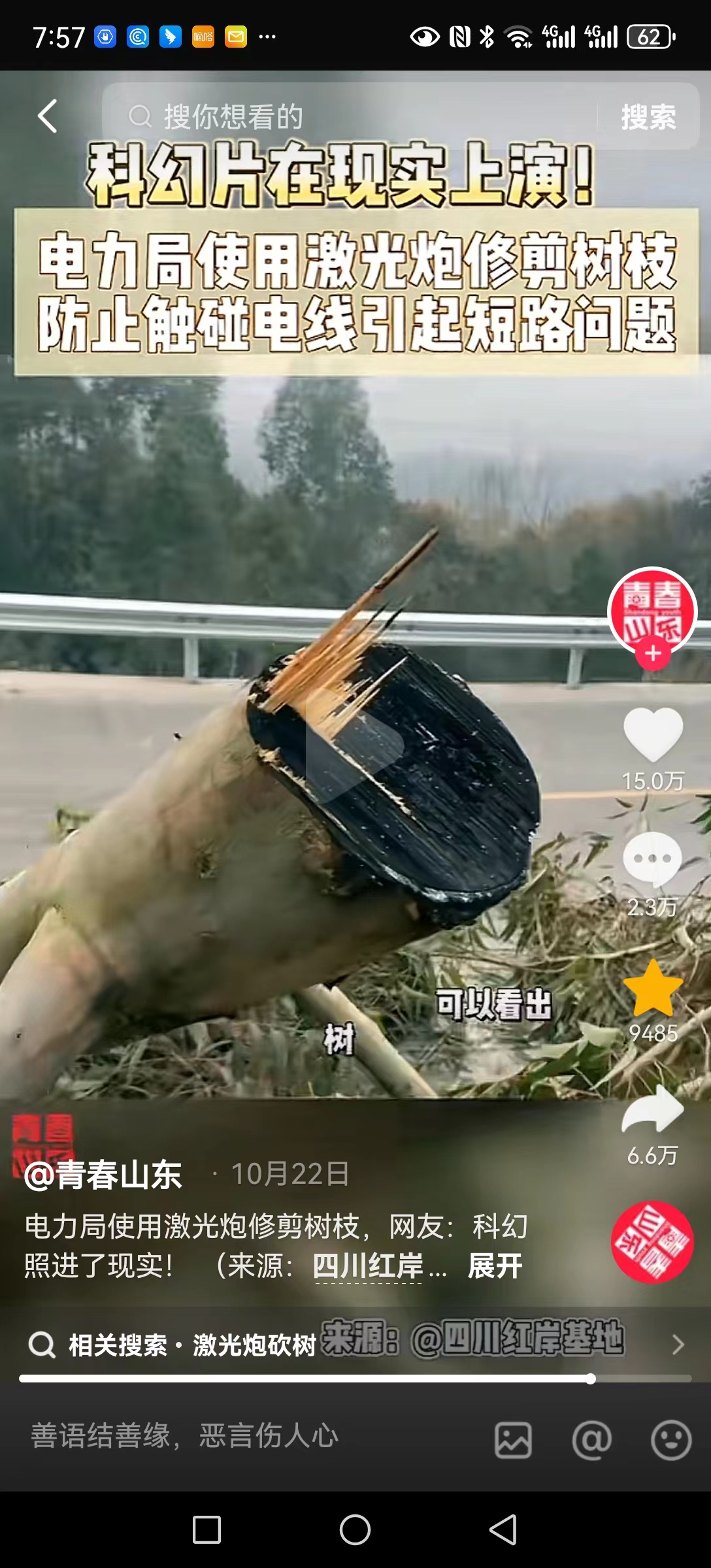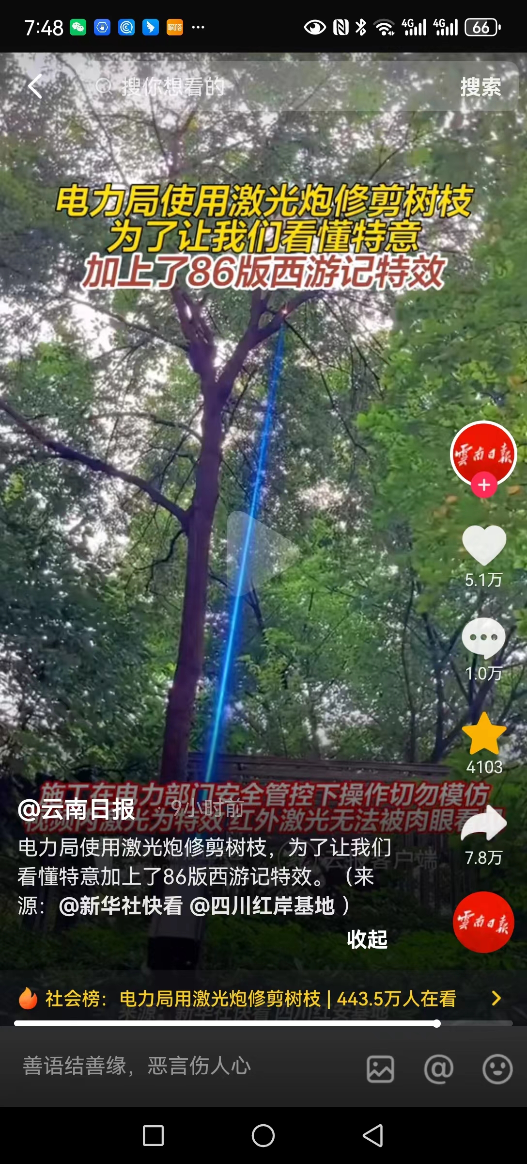 20231225,我司生产的激光清障仪在一次电力安全事件用激光清障仪处理树障的短视频在抖音上引发热议,被网友戏称为六脉神剑,并与《天龙八部》和《西游记》等经典电视剧联系起来。引发了各大网络平台的关注和转载。