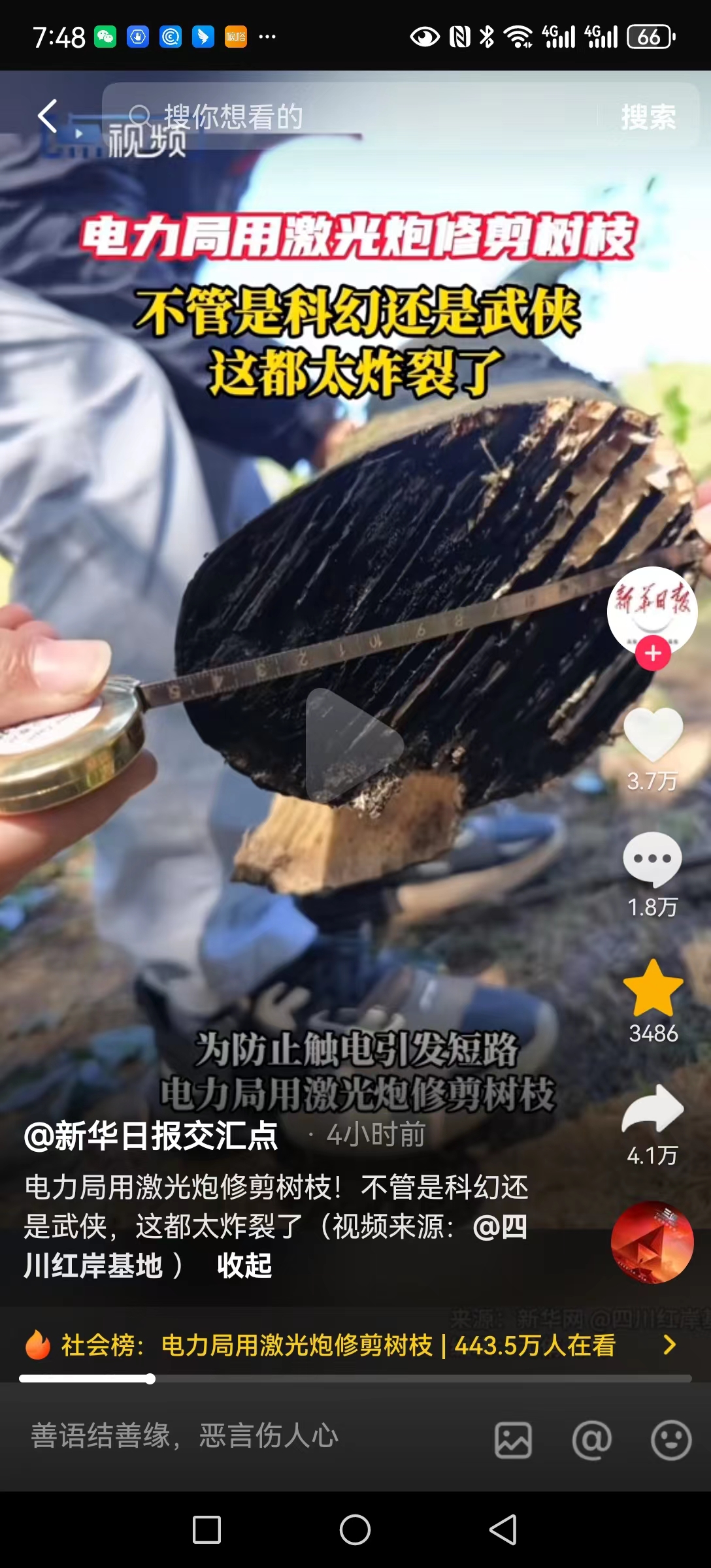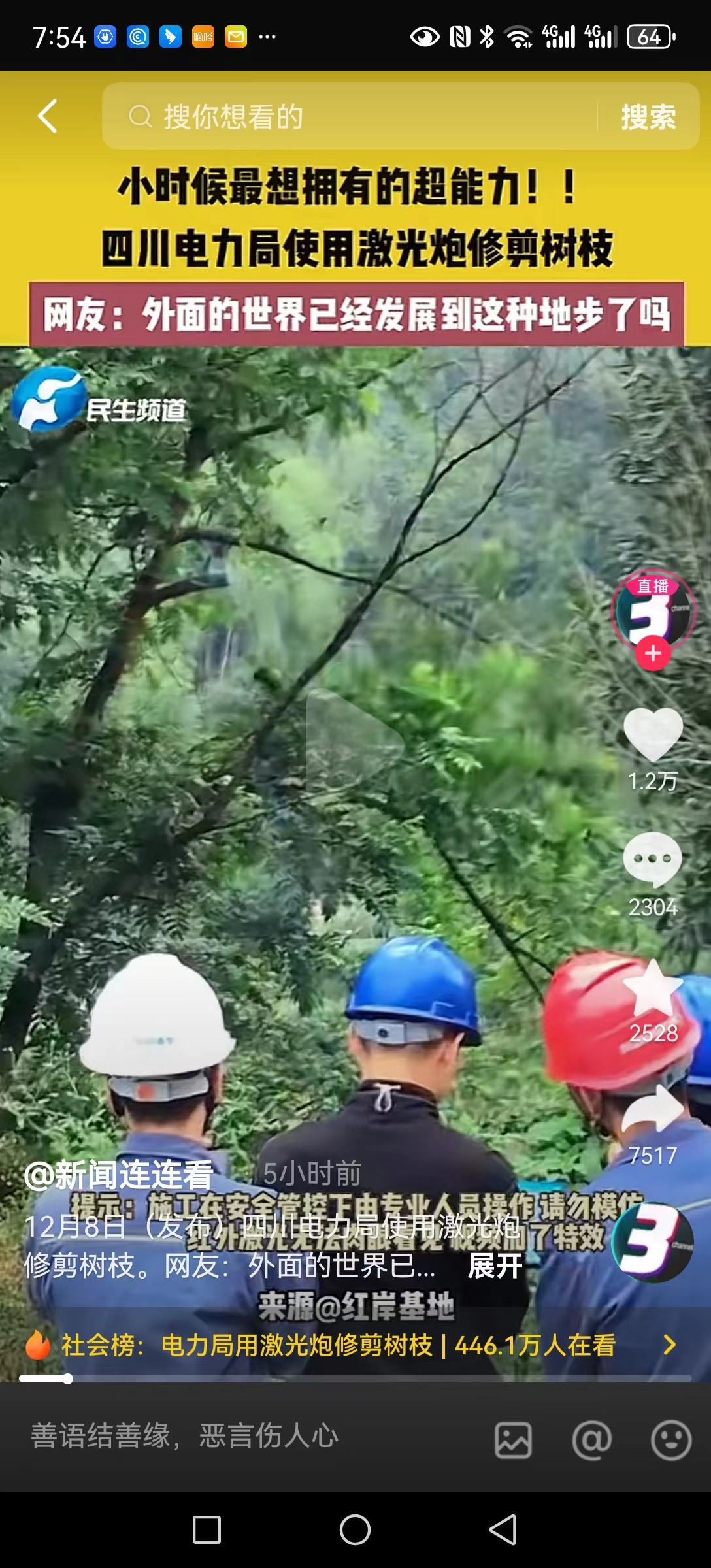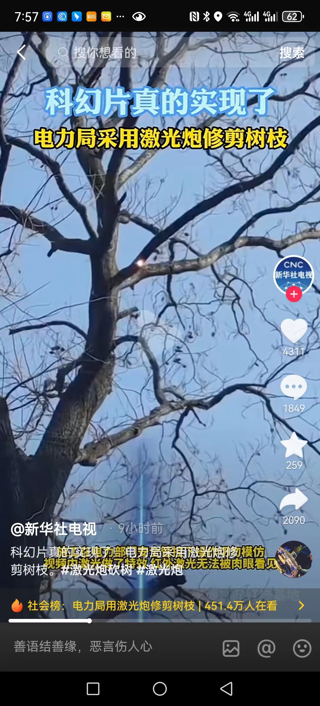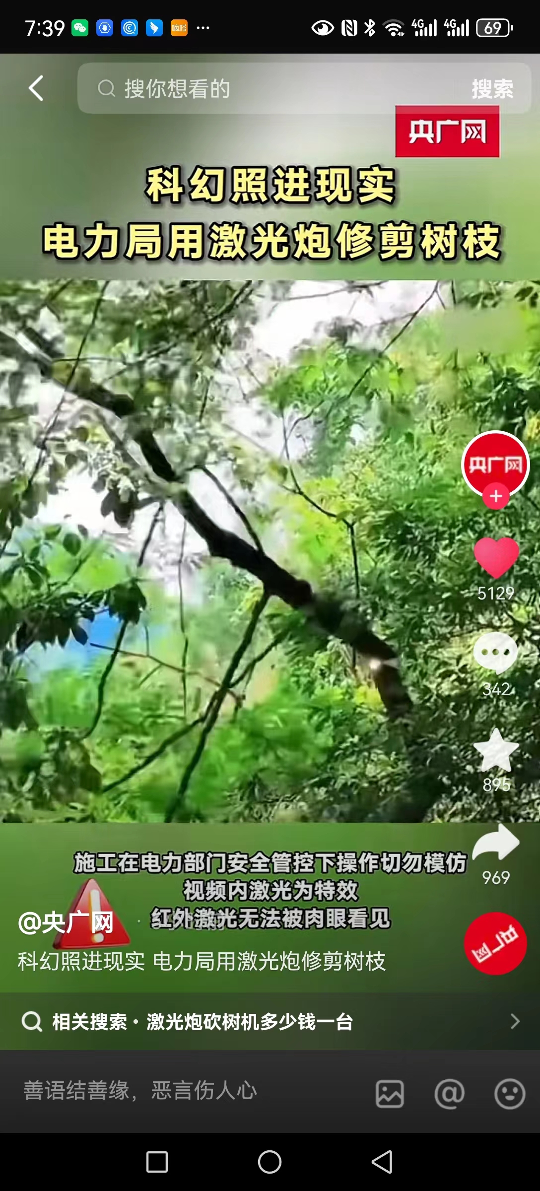 20231225,我司生产的激光清障仪在一次电力安全事件用激光清障仪处理树障的短视频在抖音上引发热议,被网友戏称为六脉神剑,并与《天龙八部》和《西游记》等经典电视剧联系起来。引发了各大网络平台的关注和转载。